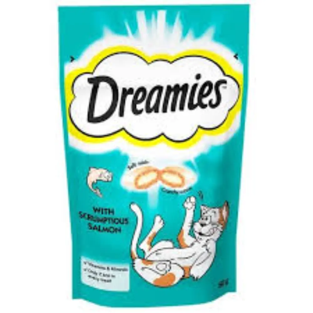 Treat your cat to Dreamies Salmon 60G—a delicious snack that will make them purr with happiness!